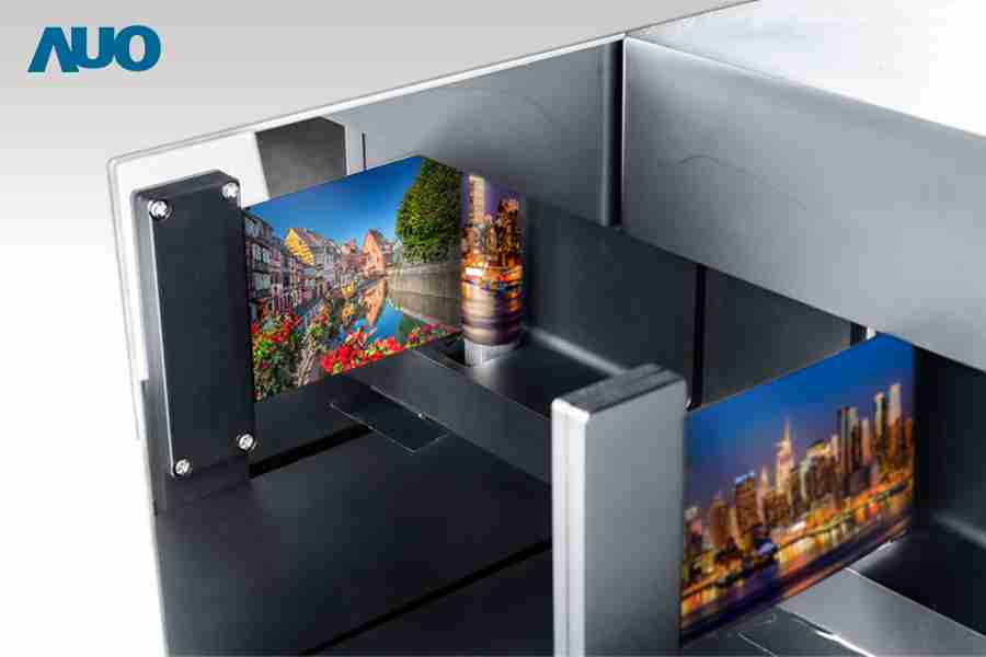 财神娱乐 5.6寸双面可卷式 OLED 显示器,,双面显示可让不同用户观看,,并以卷曲方式收纳便于携带