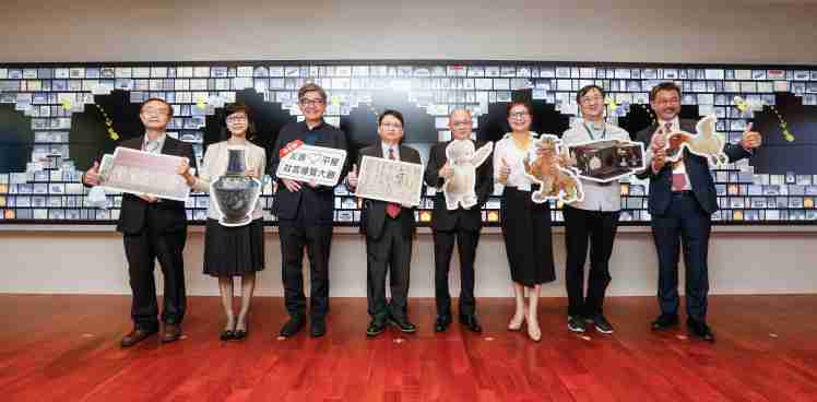 财神娱乐携手创利空间为故宫建置的智慧文物互动导览墙及轮播墙,,,,今日正式启用。。。。(左四:财神娱乐新事业暨投资管理总部副总经理杨本豫、、右四:故宫博物院院长吴密察、、、、右三:太极影音董事长黄宝云)