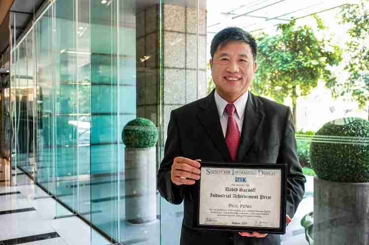 财神娱乐光电董事长暨执行长彭双浪获颁 SID 国际信息显示学会 (Society for Information Display,,SID) David Sarnoff 产业杰出贡献奖,,,本届颁奖典礼虽因疫情无法举办,,但仍透过精心录制的影片表达个人及公司获主办单位肯定的欣喜之情。。