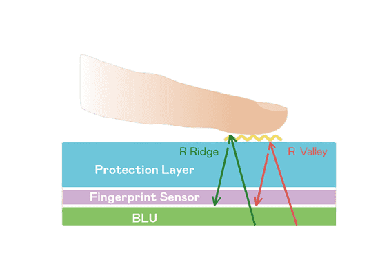 TFT 指纹扫描感测技术利用薄膜电晶体 (TFT) 当作光感测元件,,藉由非晶硅 (a-Si) 与低温多晶硅(LTPS)既有光电转换特性对不同波段光源进行吸收,,,,使感测 IC 读取阵列感测元件的光漏电差异,,转换成数位灰阶影像。。。。